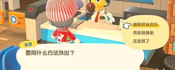 1、游戏中想要前往别人的岛需要到机场的位置选择外出,点击外出后会出现两个选项,分别是本地联机的岛和互联网连接的岛,本地联机的岛是指身边的好友通过选择本地联机前往好友的岛;