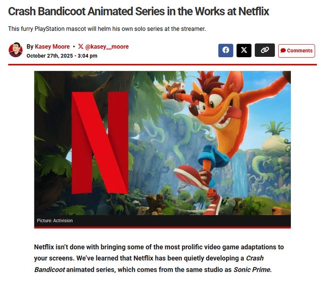 据外媒报道,Netflix正在将游戏《古惑狼》改编成动画剧集。