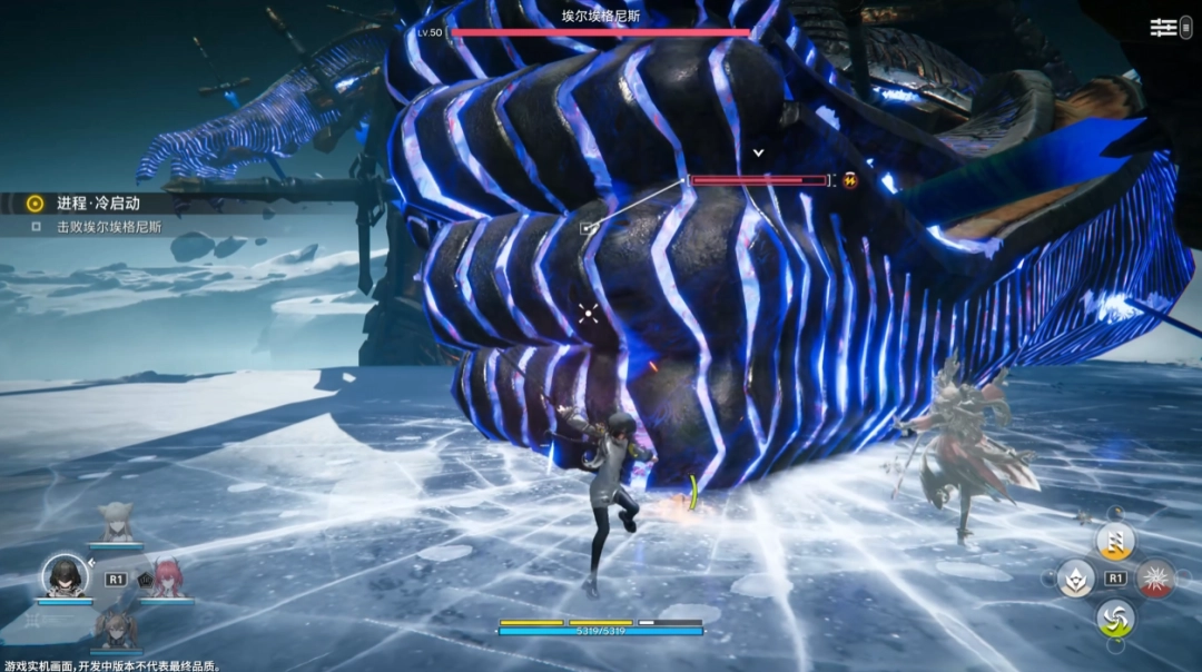 我个人觉得,这个新增的BOSS战,还是相当不错的——它让玩家在序章部分就能更直观的体验到游戏的小队战斗机制。如今的“埃尔埃格尼斯”凭借其身为巨构的压迫感、独特的交互机制,以及更华丽的演出效果,让玩家终于能清晰地感受到,这不再是一个稍强的“精英怪”,而是真正意义上的压轴大戏。