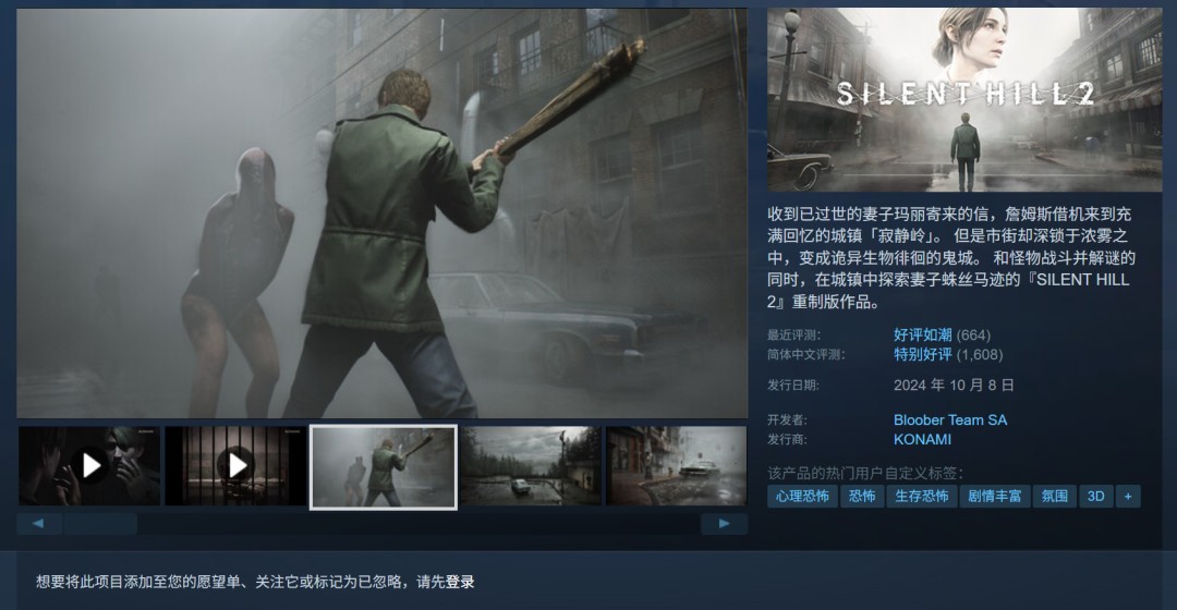 去年10月,Konami还推出了《寂静岭2:重制版》,开发工作室Bloober Team目前正在制作《寂静岭1:重制版》,据说3代的重制版和完全新作已经被安排上。