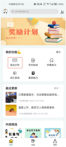 1.在应用主界面底部的推荐栏目中,定位并进入语法练习模块。