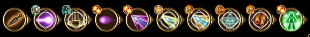 苦无 - 补位帝王之光 - 增幅长枪(对暗)/– 灵魂护盾(帝王有延迟)– 增幅冲击波(对无)(或不塞连击,苦无 - 补位帝王 - 增幅终结然后用冲击波爆能连触发帝王)。