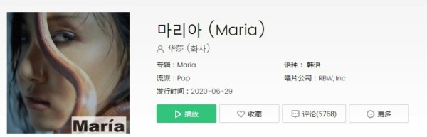 这首歌是由韩国 歌手华莎(화사)演唱的:《마리아 (Maria)》