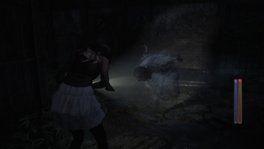 玩家可依据袭来的怨灵或当前情况切换滤镜,一边探索一边揭开村庄的谜团。“灵视”滤镜在战斗中可延长拍摄距离,而在探索时,则能重现以残留思念形式留下的过去行动。