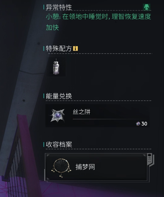 捕梦网本身也是有着喜好的,它很喜欢蓝色的灯光,收音机里面所播放的音乐等等。玩家们如果在这些情况下携带它的话,是可以让其的情绪变得更友善一些。