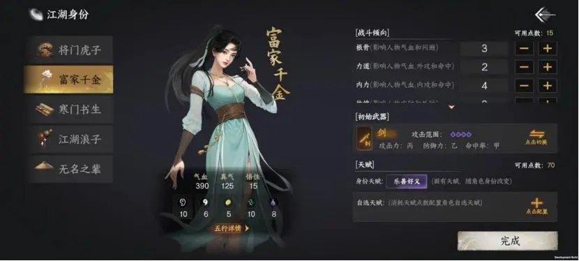 淮陵富商之女,向往江湖自由。为摆脱婚约离家出走,在诸葛畅的指点下蜕变为名震江湖的女侠。二周目解锁此身份,体验从富家千金到江湖女侠的华丽转身。