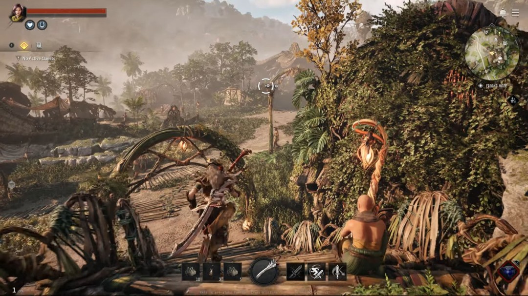 开发团队突破原作弓箭占比超80%的设定,将战斗比重调整为50%近战与50%远程。目前已确认的武器类型包括六种近战武器(巨剑、双剑等)和六种远程武器(弓、长弓、弩弓等),未来可能根据玩家反馈追加更多种类。这种设计既保留了原作标志性的弓箭玩法,又通过近战武器拓展了战斗维度。