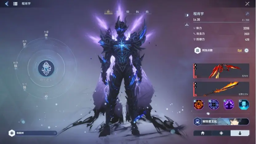当程肖宇终于觉醒为完全形态的暗影君王”时,游戏真正的高潮才到来。君王化会让你体验什么叫做压倒性的力量。在特定条件下,程肖宇可以觉醒为完全形态的暗影君王,释放毁灭性的技能。