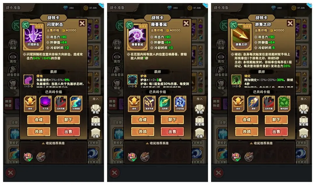 实战中需要保持机动,利用闪现射击主动调整站位,避开敌方关键技能或突进。由于核心伤害来源于普攻频率而非单次爆发,因此对走位和技能衔接节奏要求较高。该流派的短板在于暴击收益不明显,面对超高防御的敌人时可能出现刮痧情况,需要搭配破甲类辅助卡牌来弥补。