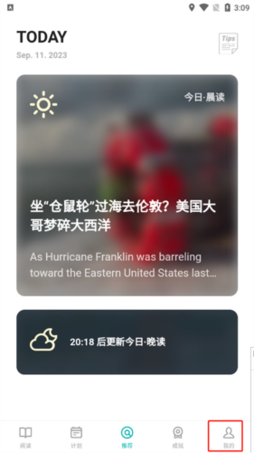 1.进入薄荷阅读后,打开“我的”页面,随后点击“阅读设置”。