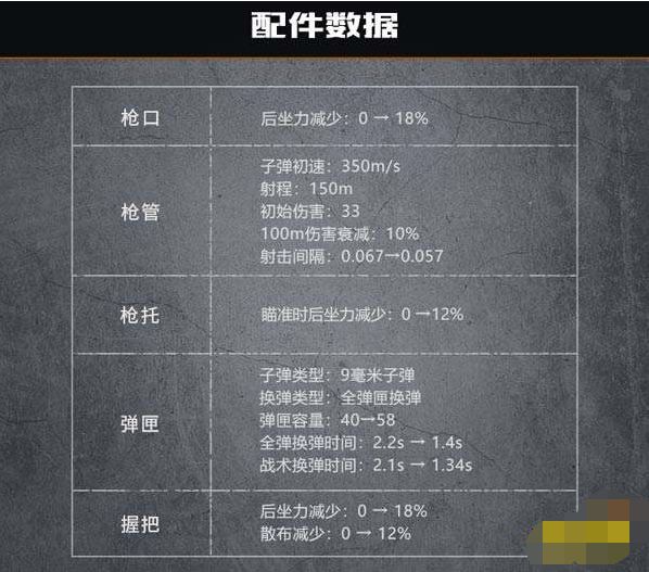 经济实用的近战武器,单发威力较小,射速快,弹匣容量大,后坐力较小,非常适合新手使用。同时大弹匣、高射速、操控性强使得该类枪械在长时间持续输出中拥有较大优势。