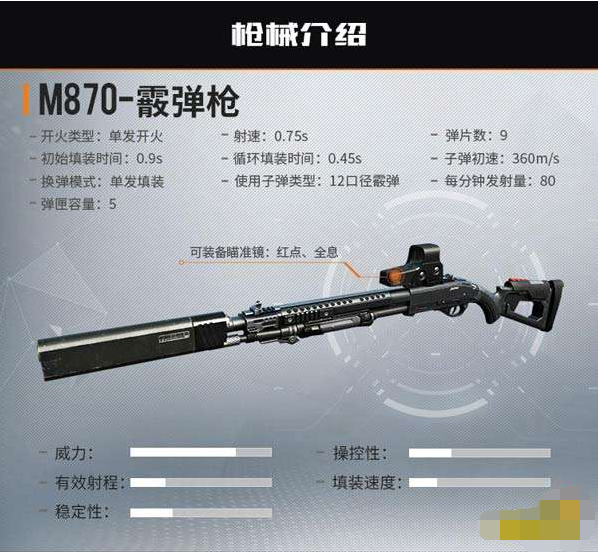 使用大口径霰弹,一次发射复数个弹片,近战情况下拥有最高的火力和命中范围,但中远距离作战乏力。