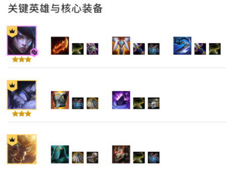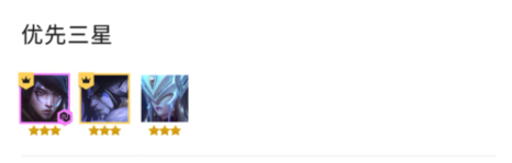 因为月神羁绊的特性,月神必须都要三星,5人口前需要出三星丽桑卓(皎月),接下来可以在六人口甚至七人口出三星厄斐琉斯和塞拉斯(六人口还是七取决于当前血线和战力)