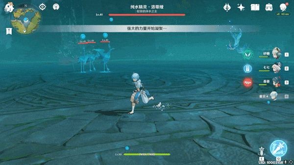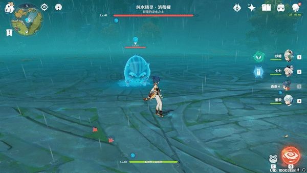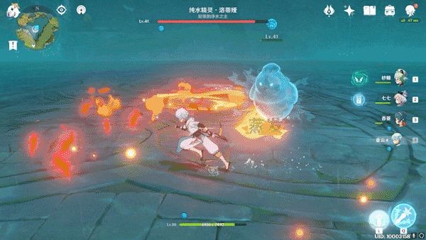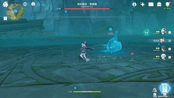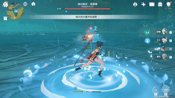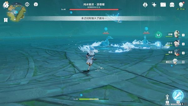 纯水精灵作为一个比较特殊的boss,其战斗基本都是与上述的水之幻形进行,由于水之幻形自身为水属性,所以身上会持续附着水元素,我们可以利用这点使用冰元素的角色对其造成冰冻效果后进行输出或者直接用雷属性角色造成长时间感电伤害进行范围输出。