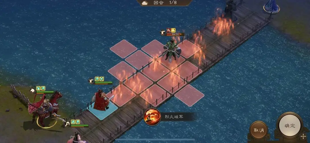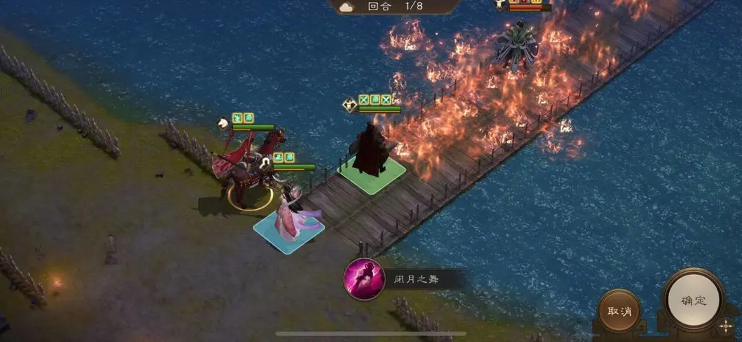 战斗开始,周瑜率先上前施展火攻技能。这一技能不仅能对徐庶造成直接伤害,还能改变战场局势,为后续攻击创造有利条件。周瑜火攻后,貂蝉立刻使用回归技能,让周瑜再次获得行动机会。