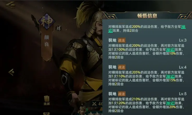 颜良的【横扫千军】施加标记状态,文丑的【贯日长虹】对标记目标造成额外40%伤害。实战中需将两者置于相邻位置,使技能覆盖区域重叠。建议颜良携带【撕裂】武器延长标记持续时间,文丑装备【精准】宝物提升暴击率。