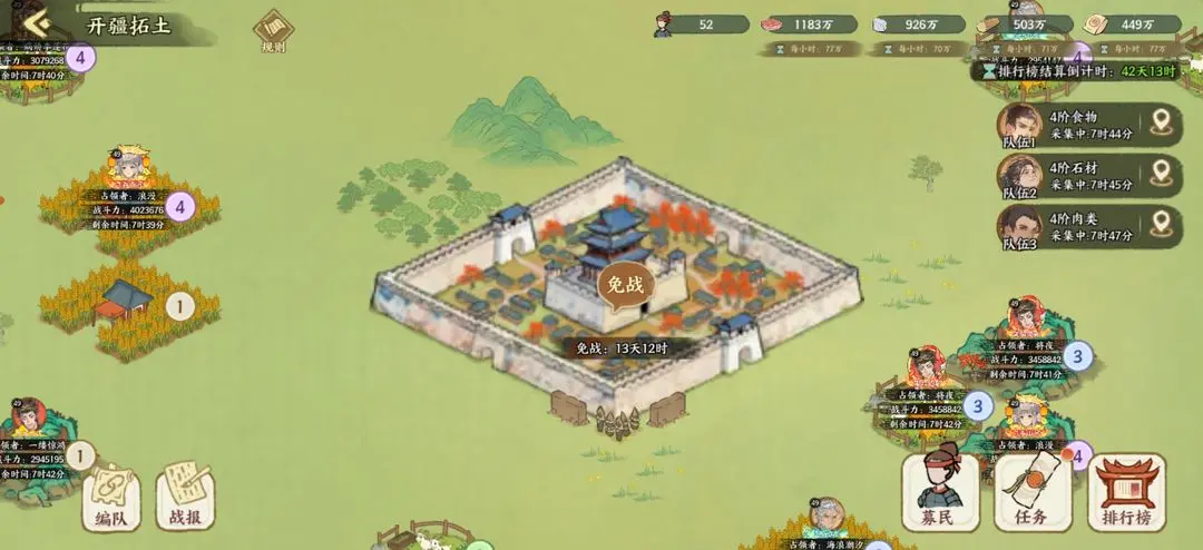 抢夺时可获得他人已采集资源的一半,这些都与排行榜有关。