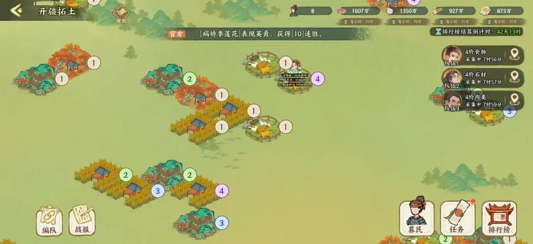 开新地块有大量奖励,但不用急,因为这个奖励是赛季奖励,有好几十天的时间,平民更重要的事仍然是先升级建筑和工艺。