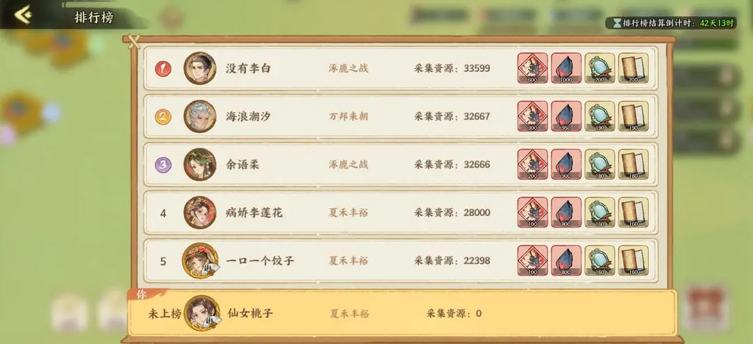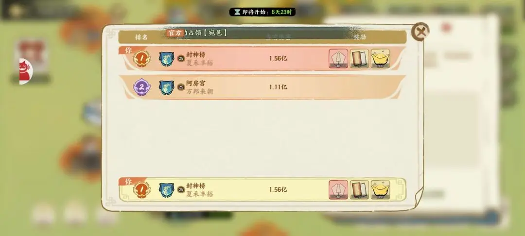 排行榜跨区,奖励有新瑞兽。如果想拿高名次,抢别人的资源是必须的。