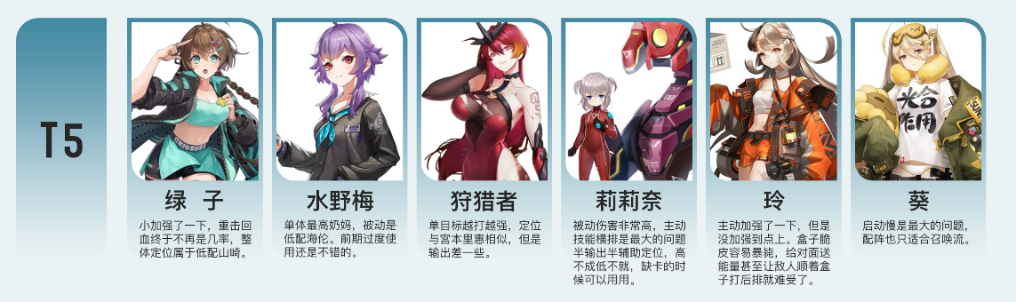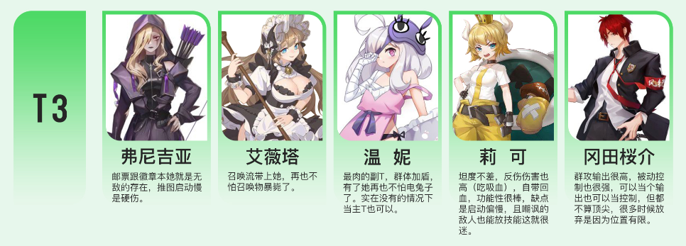 保护T,群体加盾,单体削弱。本身坦度不高,偏功能型坦克,在面对龙与电兔子(电击兔永远的神)时表现非常优秀,且紫卡获取低廉。属于乍一看各方面中规中矩,但是上手后异常好用,懂的都懂。