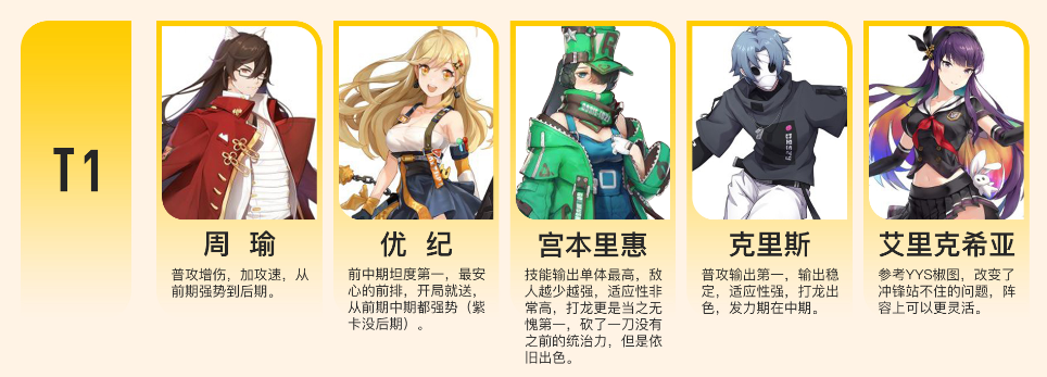 单点突破、平砍输出,配合周瑜及冰系打出非常高的输出,而且还可以冰冻敌人,输出控制兼备。由于是紫卡,获取难度低,. 上限8星在测试服足够用到毕业,且能作为上9的狗粮,性价比极高。