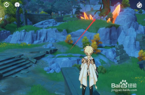 可以看到光柱正对着的方向,有发光的橙色石头。