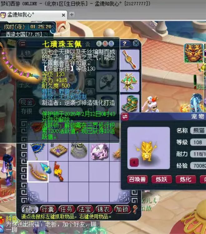 【生日快乐】服务器爆出的130级无级别野兽项链,初灵185的属性突破同级装备极限,其无级别特效与野兽之力的组合,使X9物理系玩家可同时享受装备等级压制与伤害增幅,预估1500亿梦幻币的起拍价已引发藏宝阁波动。