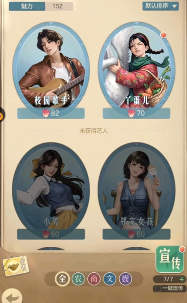 想要让艺人进行宣传,首先就是要有品质高的艺人,通过任务或者是抽卡玩法获得的艺人一般是在优秀或者是珍贵级别,建议经营娱乐圈的时候要充分考虑每个艺人擅长的领域,在利用艺人进行宣传时就时要考虑艺人的唱跳能力是否过关。
