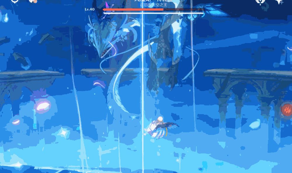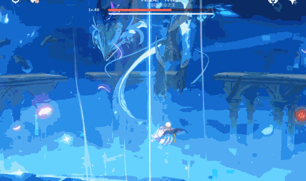 boss双爪抓住平台,龙头从一侧向另一侧进行高额风属性伤害吐息,范围比较大