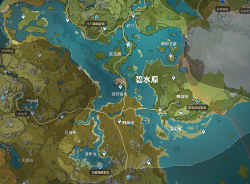 归离原、轻策庄、地中之盐、望舒客栈、荻花州、石门、渌华池、明蕴镇、瑶光滩以及翠玦坡;
