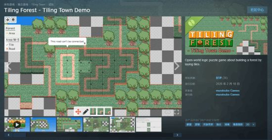 Tiling Forest对应的正式版Tiling Town正在开发中,计划2026年第三季度发售。与Demo版不同,正式版将包含6个相互连通的城镇、250个可攻略区域,解谜玩法更丰富,实际可解锁谜题数量预计远超250个。目前玩家对Tiling Town期待值大幅提升。