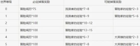 各世界等级启示之花掉落