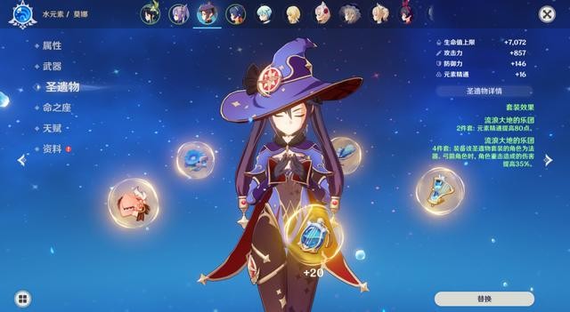 然而莫娜的能力并不止于辅助方面,给她一套【流浪大地的乐团】圣遗物,在带上【流浪乐章】。先用香菱给怪物施加火元素附着、再切换莫娜开大招增伤、然后就可以一个重击伤害过万了。虽说比上不足,但至少比下有余;能辅助又能输出,这角色练了一点也不亏。