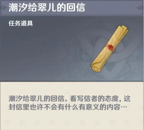 送信没有额外奖励,只是会解锁翠儿的相关剧情。我们此时返回璃月港就能找到潮汐和他身边的妹子。