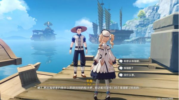 平海是船夫,完成任务后在璃月港和他对话就可以方便的在璃月港和珠钿舫之间传送(人肉传送点)。