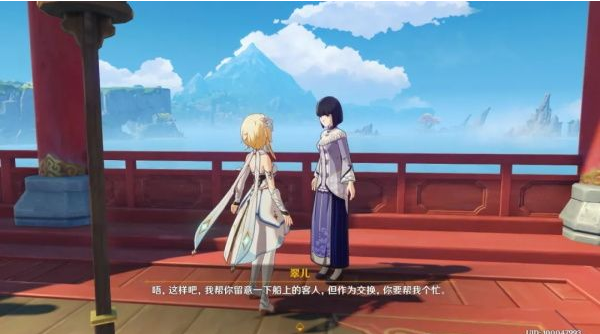 任务会让玩家与船上顾客对话来获取邀请函,不过大都是无用的对话干扰项,是游戏剧情的补充。如果大家不想浪费时间可以直接找到位于船头的秋歌。就是下图这位。