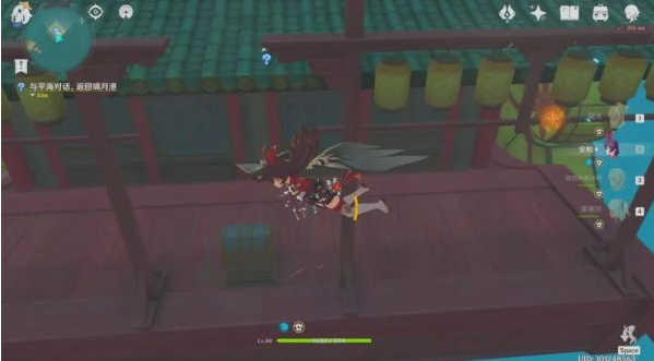 3、大家可以在如图位置起飞,直接滑翔即可抵达珠钿舫 (建议队伍内携带安柏/温迪降低滑翔体力消耗)。