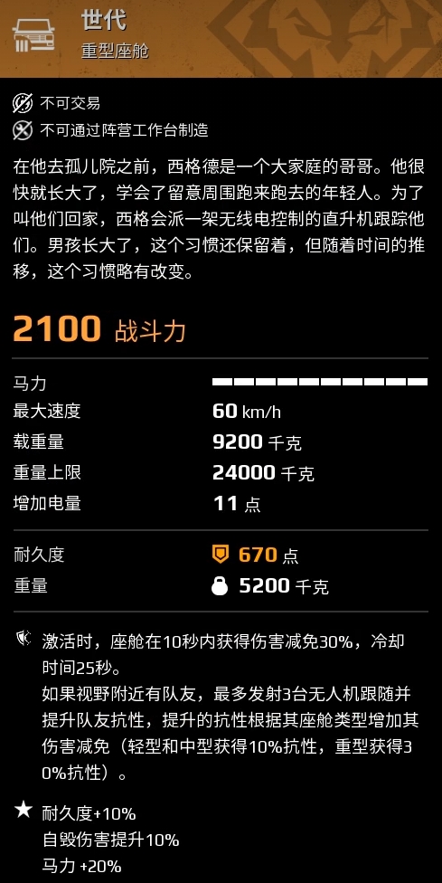 在看好品质之外,玩家就可以挑选合适的驾驶舱了,不同的驾驶舱适用不同的坦克类型,例如重型座舱,那么它仅适合于重型战车,在搭配组装的时候可以配合一些重武器进行使用,重力上限最高可以达到上万千克,玩家们可以不断的给其加载更多重武器,在战斗的时候能够给予敌方压力。