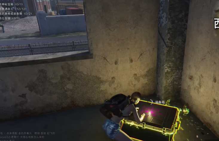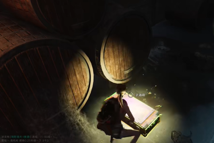 另外除了大房二楼的装备箱之外,在大房一楼还藏着一个比较隐蔽的装备箱,我们从获取“黑豹”宝箱的地方向外走一些然后直接跳跃到一楼,找到隐藏在这里的装备箱。拿完装备箱出去以后也不要急着走,在我们的头顶还藏着一个秘钥箱,通过火车上去拾取后,朝北一直直走,走到道路尽头右转进入帐篷后找到地窖,进入地窖后,击败两个小BOSS后左转即可拾取武器箱。