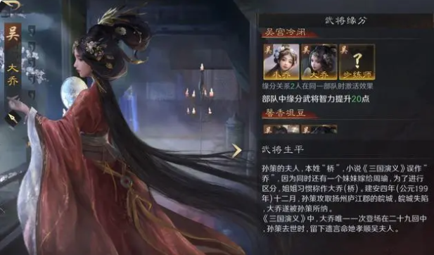 其实这个阵容是游戏中的一个强势阵容,队伍的大乔可以作为前排,抗伤害并为队友提供增伤,属性加点方面建议选择智力增加她的治疗和辅助能力,战法上可以携带横征暴敛或断敌粮道,帮助减少敌人伤害,并为其施加异常状态。
