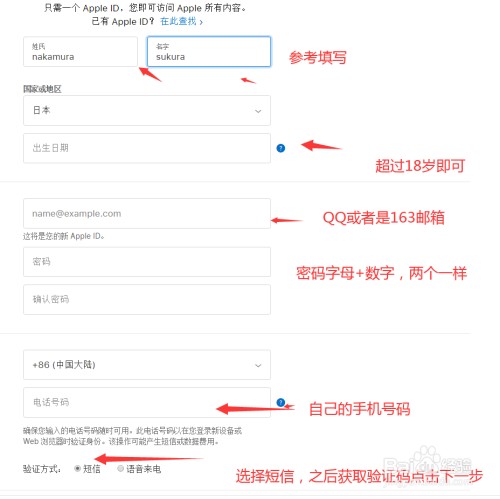 这一步比较重要,请姓名名称,请安装图片处填写,年龄设置18岁以上即可。邮箱一般使用QQ邮箱和163,密码自己设置,要字母+数字。电话号码使用国内的手机号码。