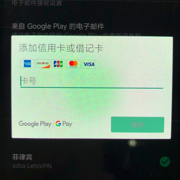 由于你已经对节点进行切换好了,而这里还是会提醒你切换到菲律宾的play商店。你只要点击添加信用卡或者借记卡,随后,你需要将卡号、年月等相关信息进行输入,之后就可以进行验证了。