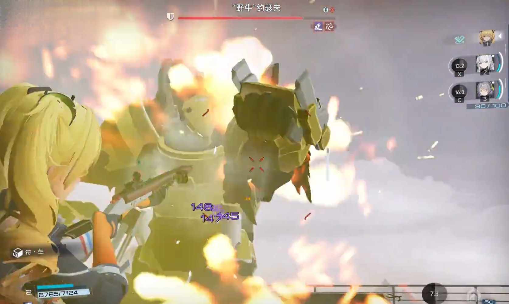玩家将野牛眩晕之后就要乘胜追击,利用芬妮的增伤去打出更高伤害,其实小编推荐的阵容就是芬妮、里芙以及安卡希雅。芬妮是个擅长突击的近战角色,霰弹枪与她十分适配,用来打前锋非常不错。里芙的技能释放速度很快,可以乘胜追击,尽快打败野牛,而且还有冷冻的效果,安卡希雅支援技能相当厉害,能够回血,同时提高己方的容错率,是个必不可少的奶妈+狙击手。