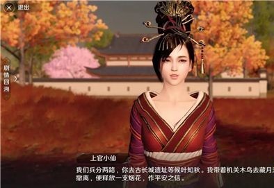 重复上面取木鸟的剧情,后去上官小仙分离。