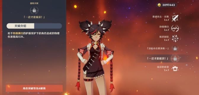 辛焱挥动乐器,对周围的敌人造成火元素伤害,并借由观众的热情,形成护盾。