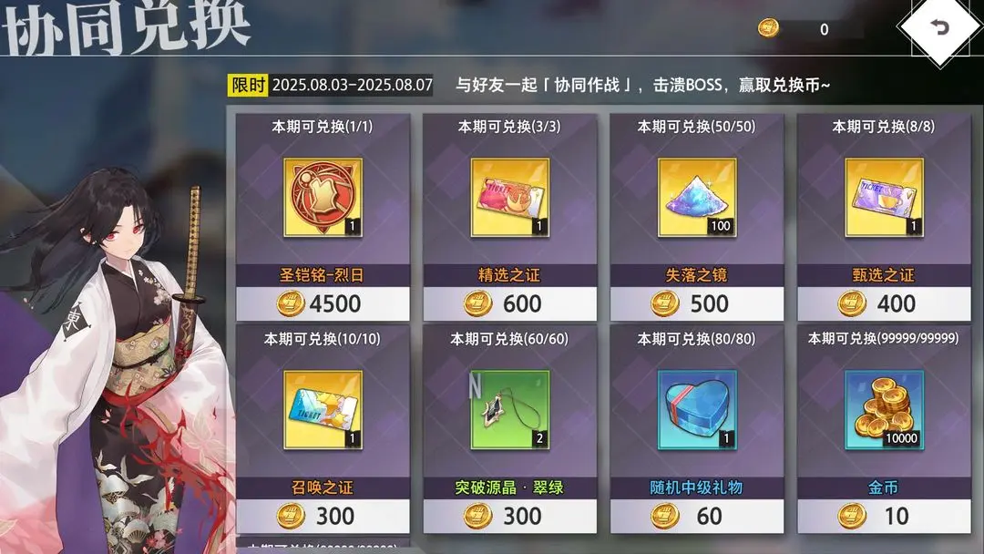 (2)失落之镜:角色升阶核心材料,兑换优先度最高。