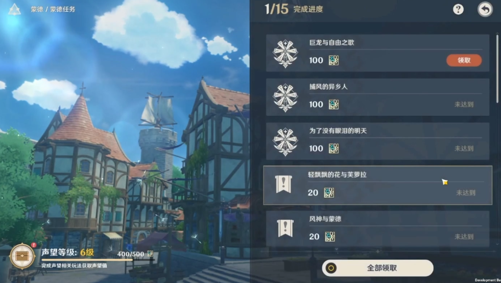 蒙德声望界面