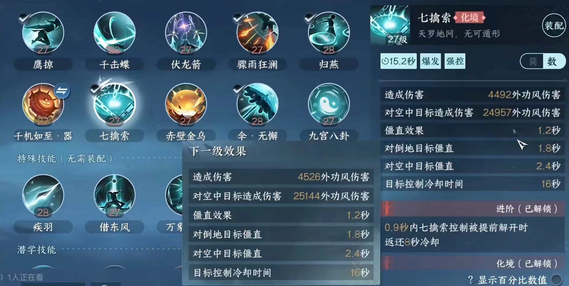 玄机具有的位移技能是鹰掠,会向前滚一小段距离,释放完之后可以直接接上归燕,这时鹰掠会再次刷新。释放归燕后还会进入到一个冲刺状态,所以常见的连招就是鹰掠和归燕。然后加上触发的鹰掠,这样形成一个小循环。这两个技能都可以在空中释放,所以大家跳起来之后也可以释放这两个技能,而且会变成俯冲,玄机的特质是在地面上有伤害加成,所以大家尽量是在地面上来释放。