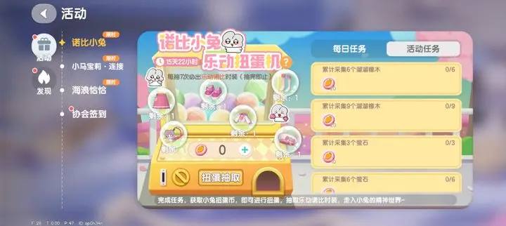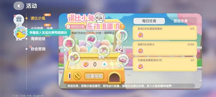 本次诺比小兔联动活动带来全新6件套服装,玩家可通过完成每日和活动任务获取抽奖券,保底机制确保420币即可集齐全套。