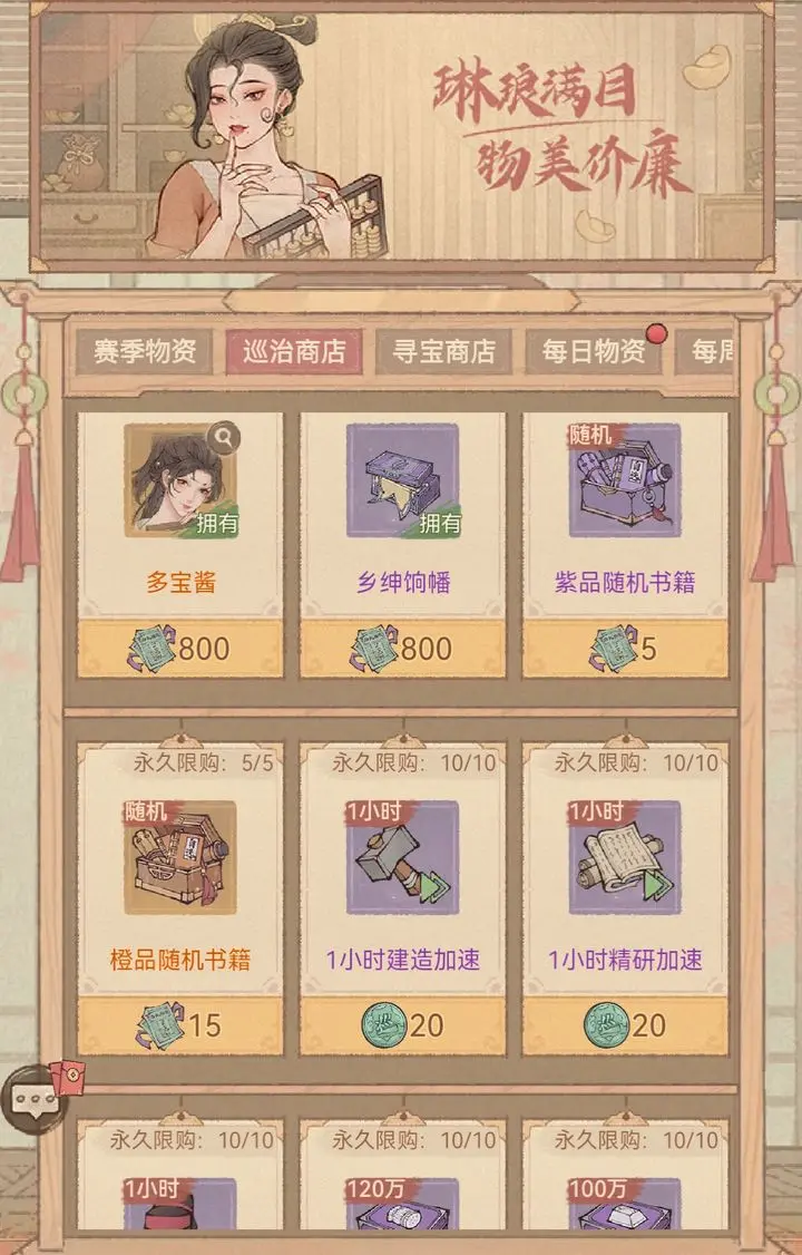 先确保多宝酱和乡绅饷幡的兑换,再根据剩余资源规划巡治宝钱的使用。避免资源浪费。